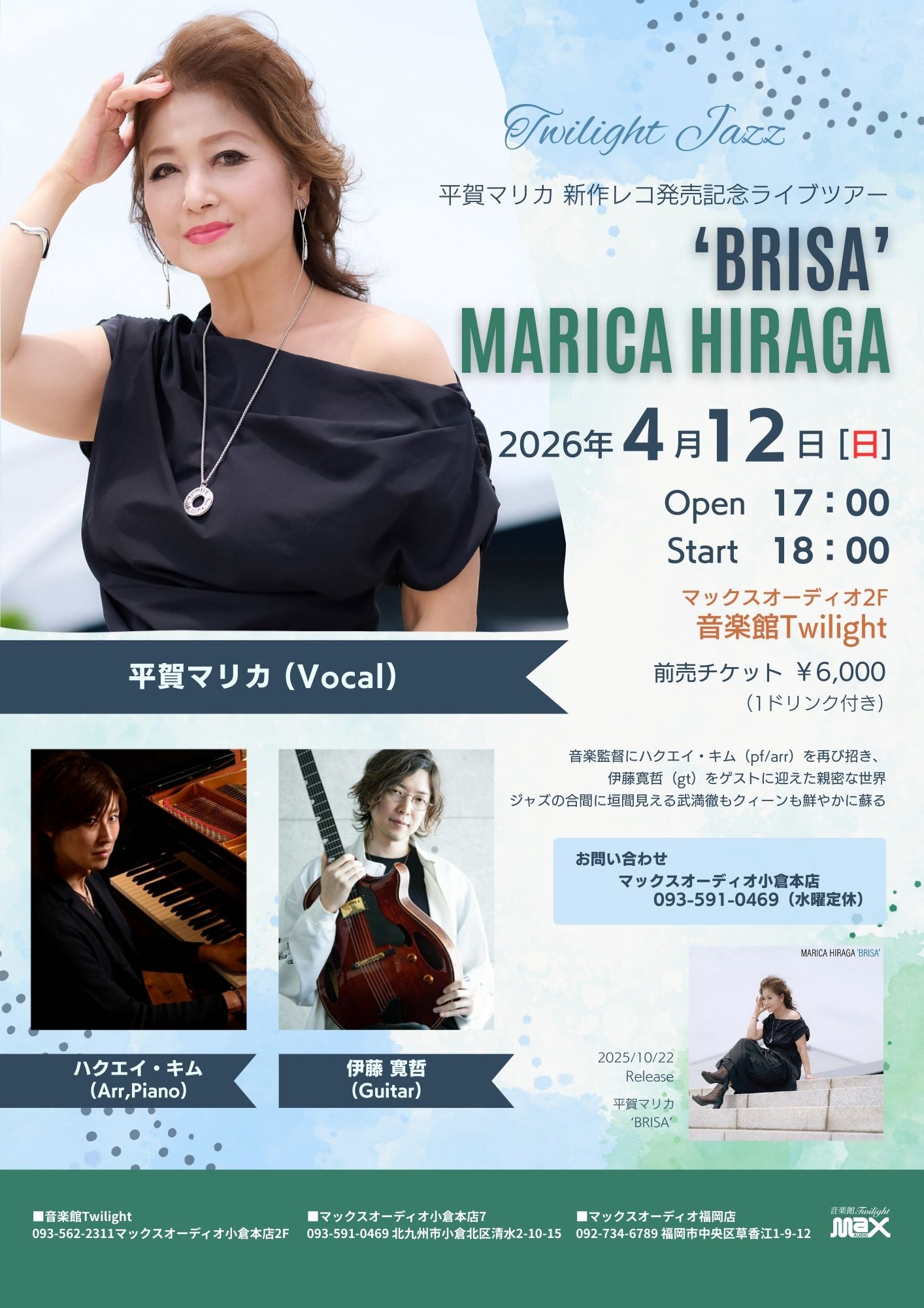 Vocal:平賀マリカ、Arr,Piano:ハクエイ・キム、Guitar:伊藤寛哲